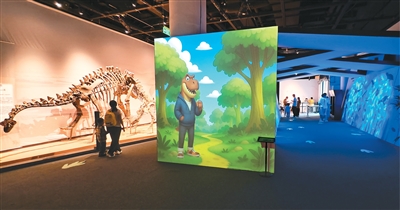游客在上海自然博物馆参观“中国恐龙展”。陈钰钰(人民视觉)供图 来源" />